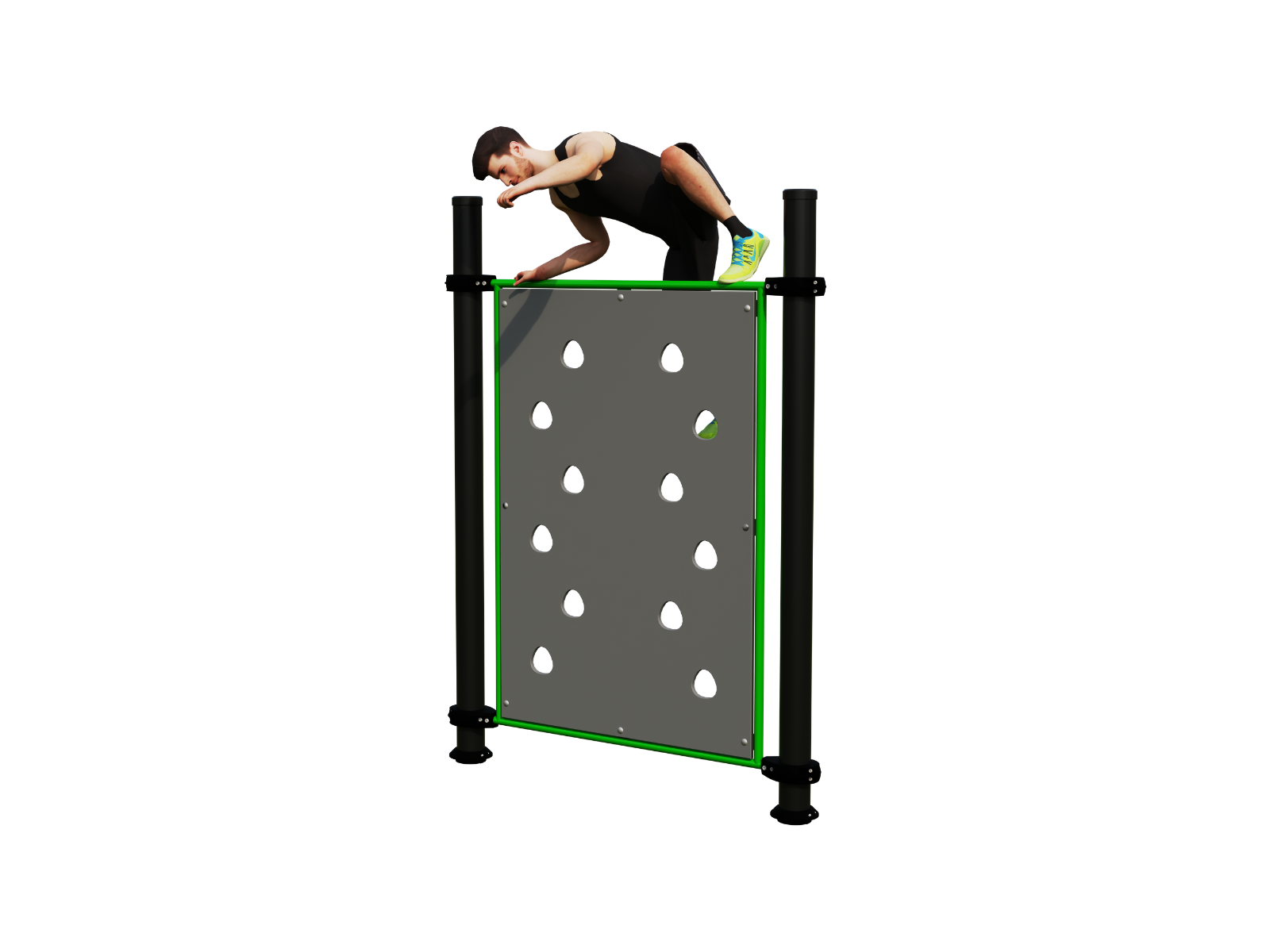 The Climbing Wall 1500 is made from premium-quality, powder-coated steel with a weather-resistant, corrosion-protected finish, designed for long-term outdoor use with low maintenance requirements.