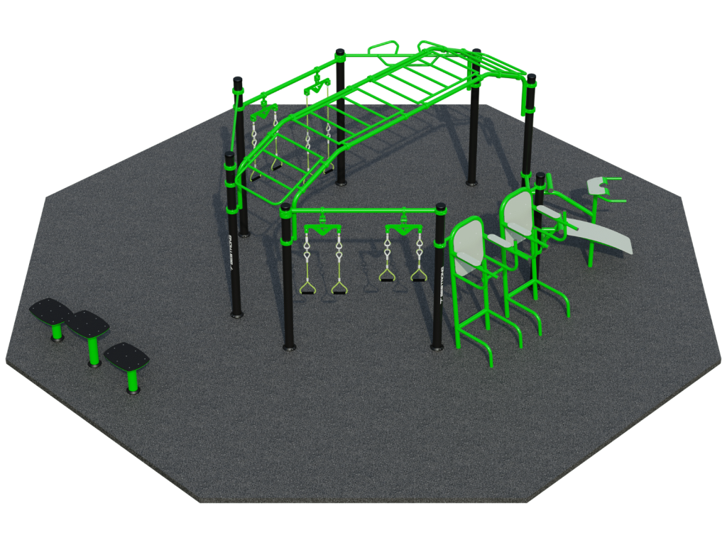 Engineered for long-term public use, FitSociety 2 features a weather-resistant structure with optional galvanized or EPD coating. Its 717 kg total weight delivers excellent stability under intensive, everyday traffic. To streamline planning, the product page offers a 3D/AR preview so you can visualize placement on the chosen site and prepare the project with confidence.